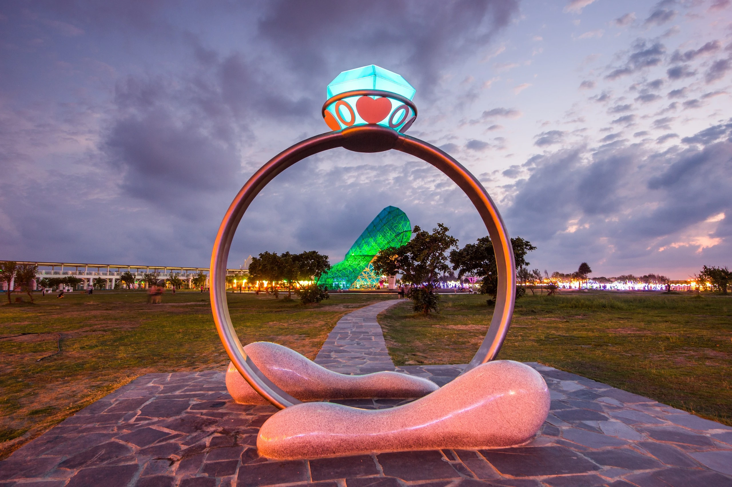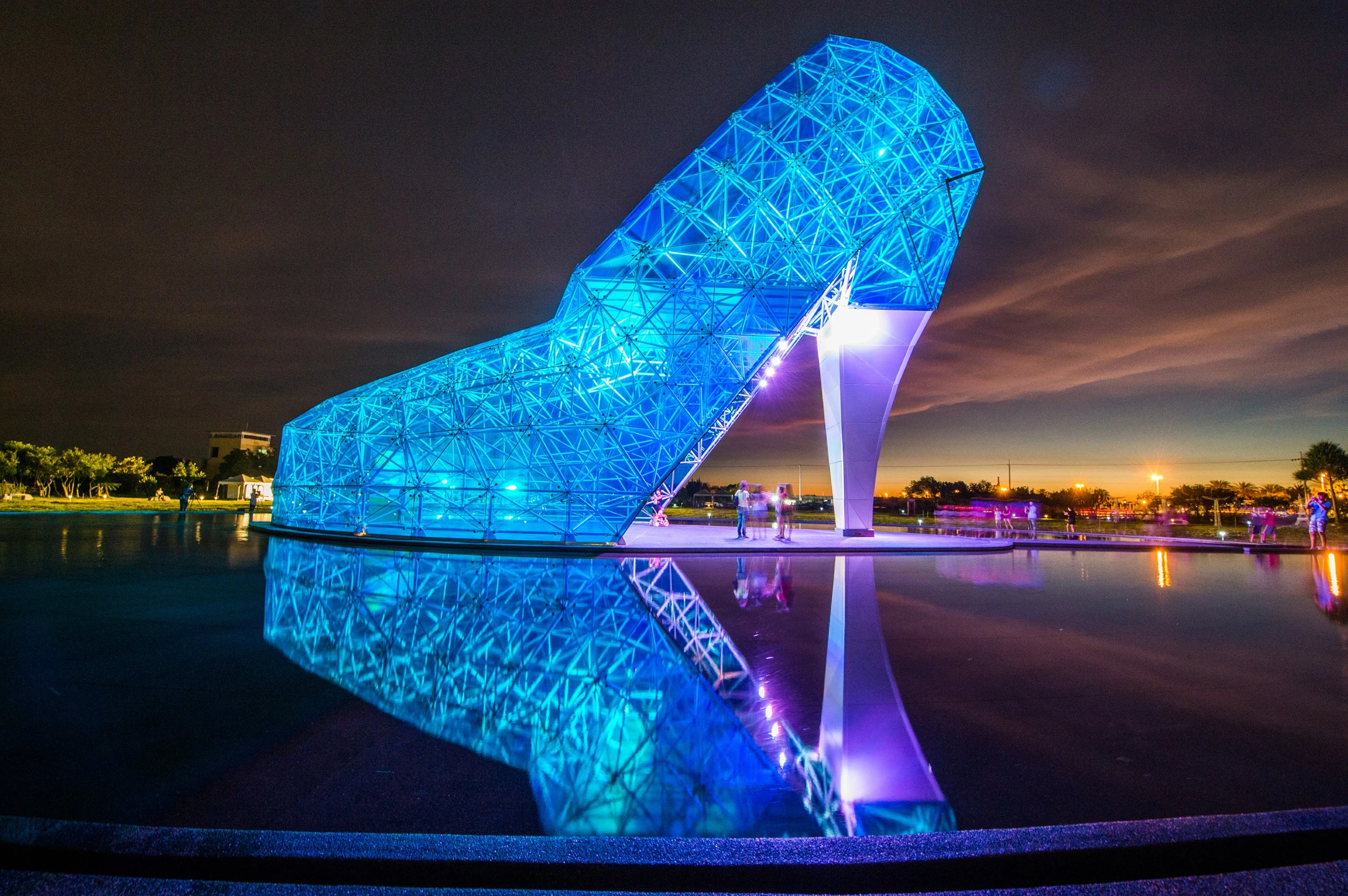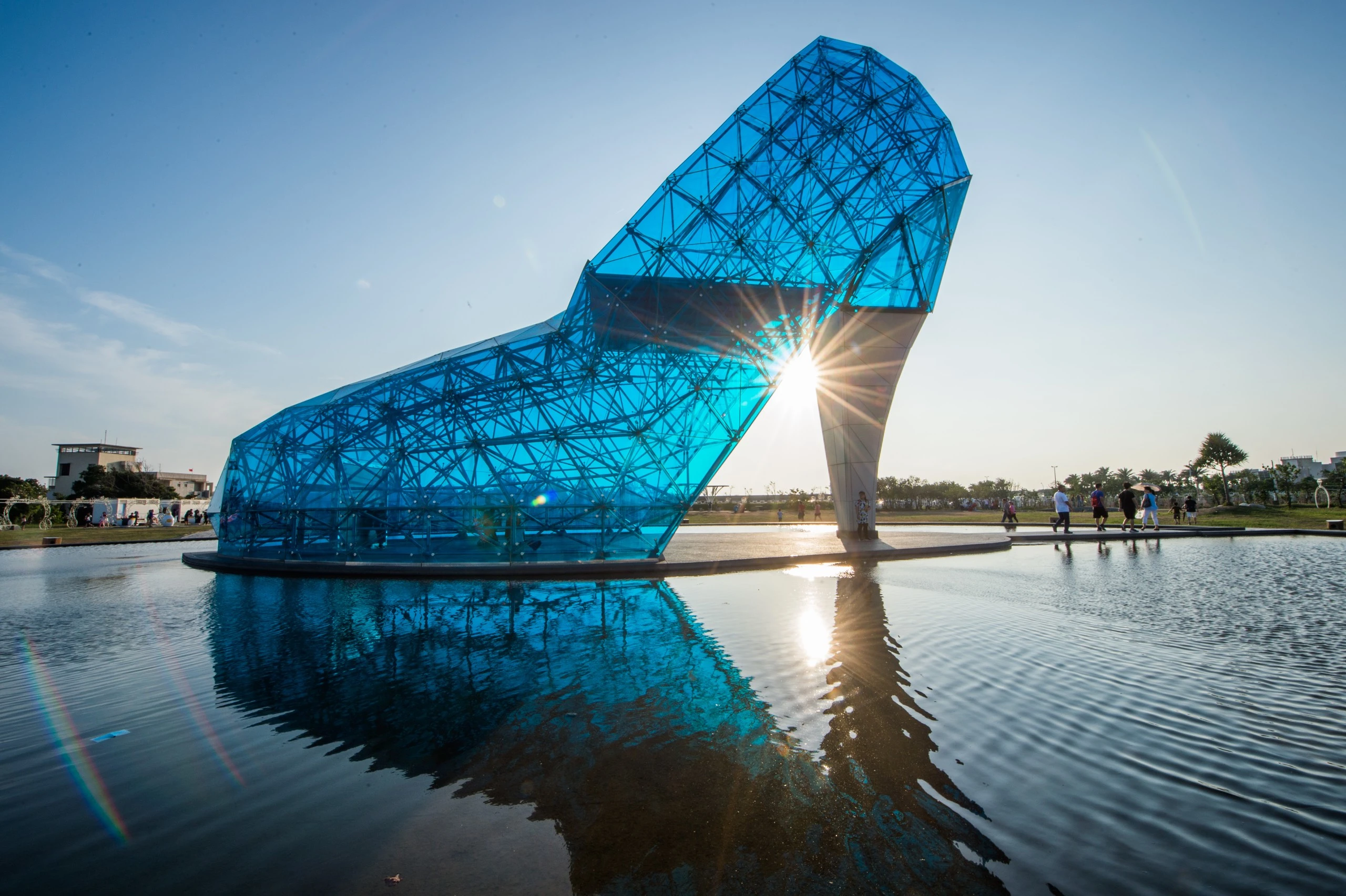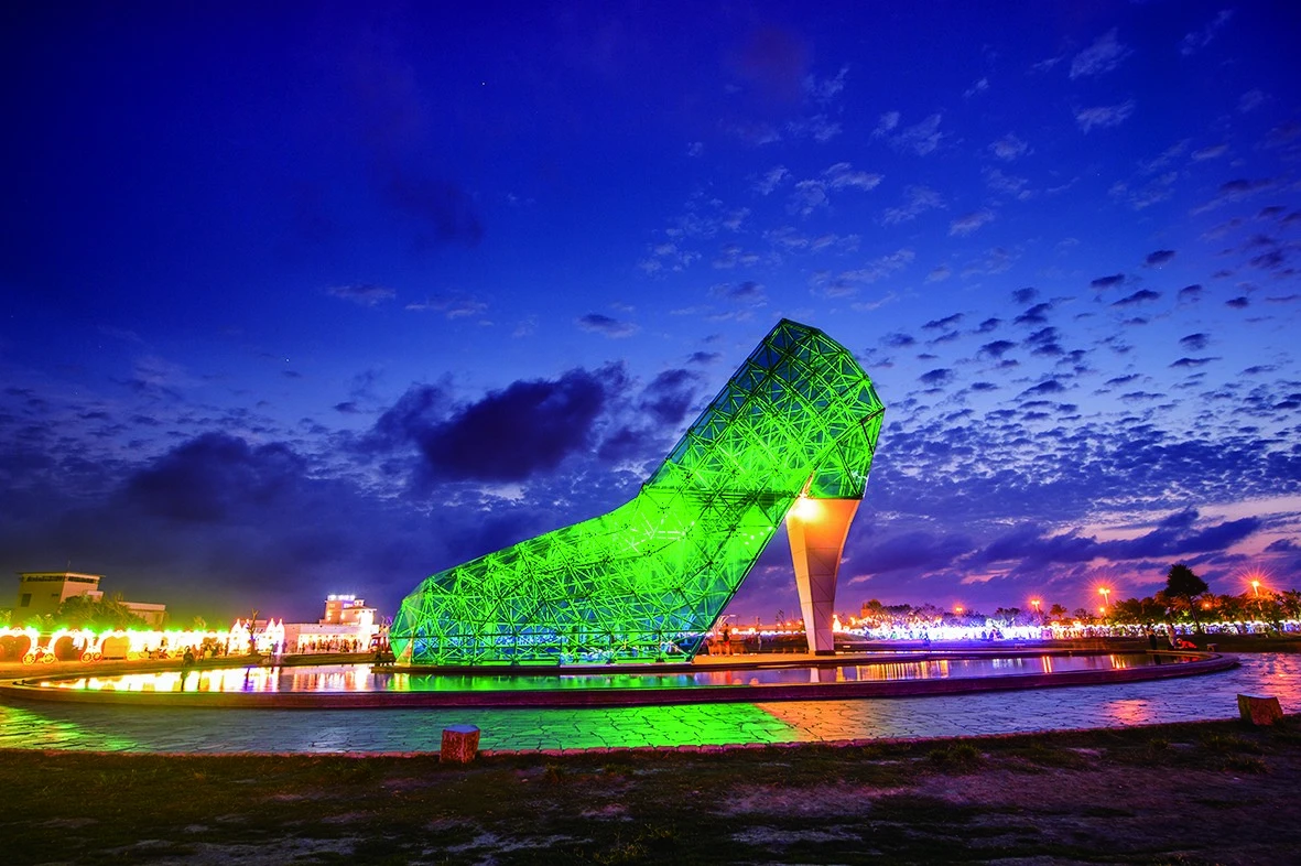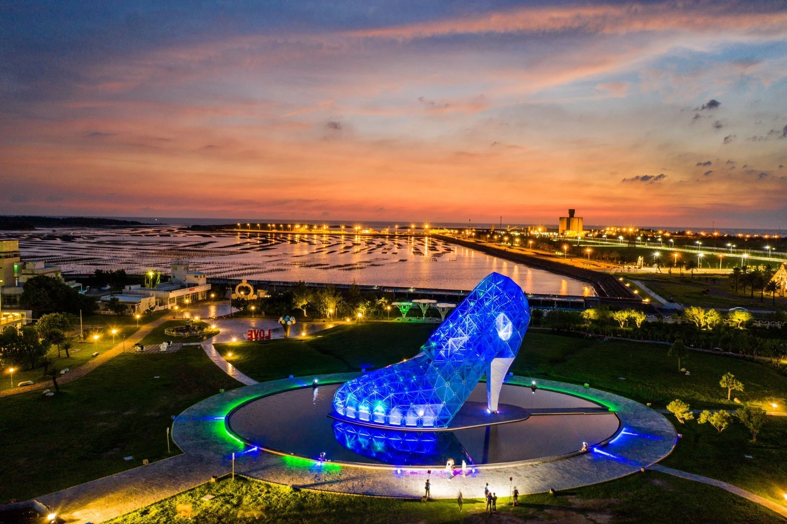 矗立在嘉義布袋海景公園的「高跟鞋教堂」,是一座閃耀動人的水藍色玻璃建築,以其獨特造型成為濱海地區的熱門地標。這座高達17公尺、由1,269根鋼架和320餘片玻璃組合而成的藝術裝置,曾獲金氏世界紀錄認證,為全世界最大的高跟鞋造型建築。 這座高跟鞋的誕生,背後有著一段令人動容的歷史故事。相傳在1950年代,雲嘉南濱海地區飽受烏腳病所苦,許多當地女性因病截肢,被迫放棄穿著美麗高跟鞋步入禮堂的夢想。為了彌補這些新娘的遺憾,高跟鞋教堂應運而生,象徵「愛情、幸福」,傳遞對幸福的期盼與祝福。 這座地標的真實意義,並非單純的打卡熱點,而是承載著一段歷史記憶與在地情感的寄託。無論是白天在陽光下閃耀,還是夜晚在燈光下夢幻,高跟鞋教堂都以其獨特的姿態,向每位到訪的遊客述說著一個關於夢想與祝福的故事。