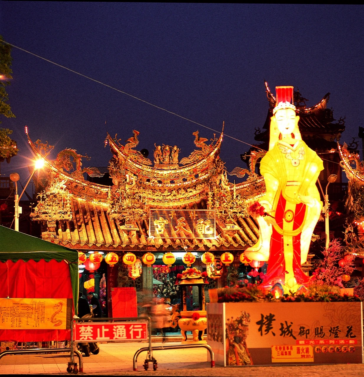 配天宮創建於康熙26年,據說有位東石半月庄人士,林馬,篤信媽祖,每年均遠赴外地的媽祖廟參拜,由於旅程十分艱辛,因此這年他決心自湄州迎回媽祖神像在自家中祭拜。迎回神像的回程,林馬經過朴子溪南岸朴樹下的茶棚,便歇腳休息,而附近居民得知此事,商請停留幾天,讓民眾可以參拜媽祖,可是數日後,當林馬欲啟程返家,神像卻變得沉重無法移動,擲筊問卜之下,神明表示永遠鎮守在此,於是民眾隨即搭建小廟祭祀;剛好廟旁有棵樸樹,所以作為廟名,稱作「樸樹宮」。之後聚落以本宮為中心向外發展,故朴子舊稱「樸仔腳」,即是得名於此。 「樸樹宮」後來更名為「配天宮」,原因年代眾說紛紜,根據較可信的說法是:同治4年(1865)重修工程落成時,廟方董事將廟名取意「配享千秋馨香、功參天地造化」而更名。 配天宮由於香火鼎盛,歷年來修建不斷,最早是在康熙54年擴建中殿和拜殿,乾隆、嘉慶乃至於同治年間,約每隔半世紀即進行修建。乃至於日治時期(1915) 的第四次修建,據信是由漳州名師陳應彬主持,採用「對場作」的方式,並首開日本官方之補助台灣廟宇修建之例。二戰後較大的變動有:民國36年重修後殿、新建了鐘鼓樓;民國64~66年興建香客大樓;民國70年改建東西廂房。 元宵節結燈花是配天宮百餘年來最具特色的慶典,起源也和王得祿將軍有關。相傳嘉慶皇帝曾敕賜王將軍,可自行在府內舉辦花燈盛典供年邁的兄嫂觀賞,後來王將軍將燈花移至配天宮,藉此祝賀媽祖,且供民眾欣賞,燈會便成為本宮的元宵節傳統。 建築簡介: 配天宮的建築配置大致呈「囬」字型,和一般廟宇一樣,中軸線上的空間最為尊貴,依次是最華麗的三川殿、最高大的正殿和後殿,也是主要的祭祀場所。最左右側是廂房,作為辦公室等空間。正殿的兩邊設置鐘樓、鼓樓,以突顯華麗的屋頂線條。 建築特色: 配天宮採用「對場作」方式重修。當時請兩組匠師以中軸線為界,各自施作左、右側,以達到競技、省時的目的。所以站在三川殿中央往屋頂一望,可以發現左右兩邊的木構件和雕刻,都不對稱,就是兩組匠師各顯神通的成果。