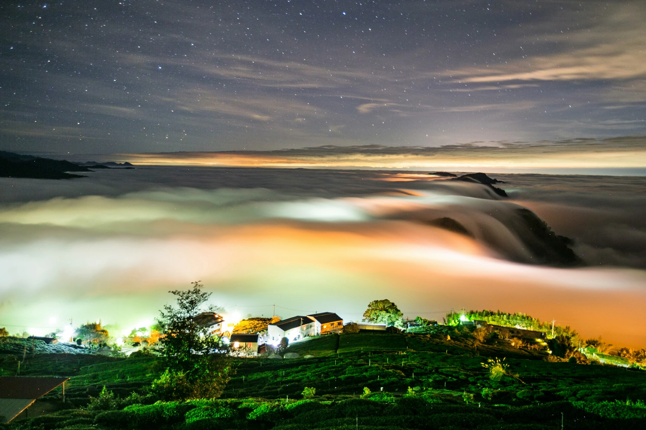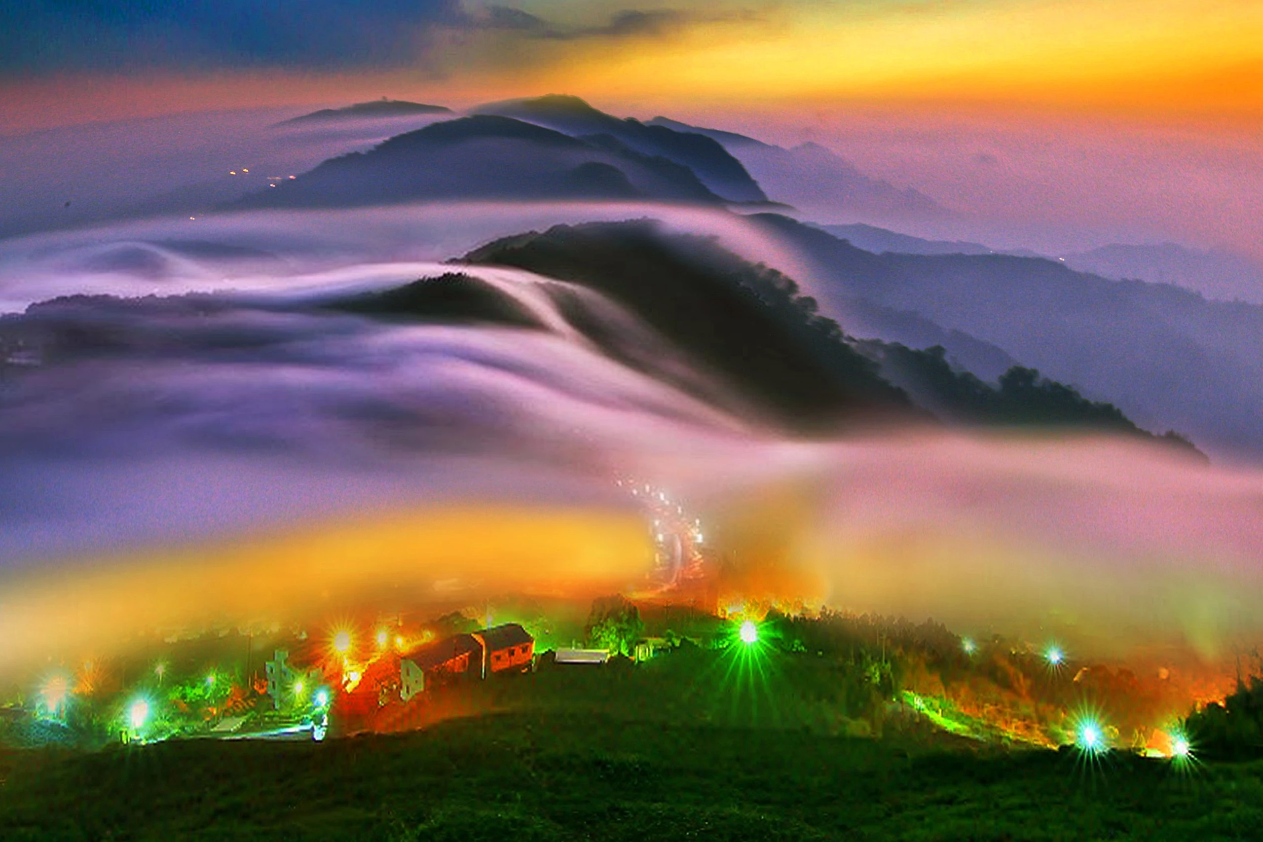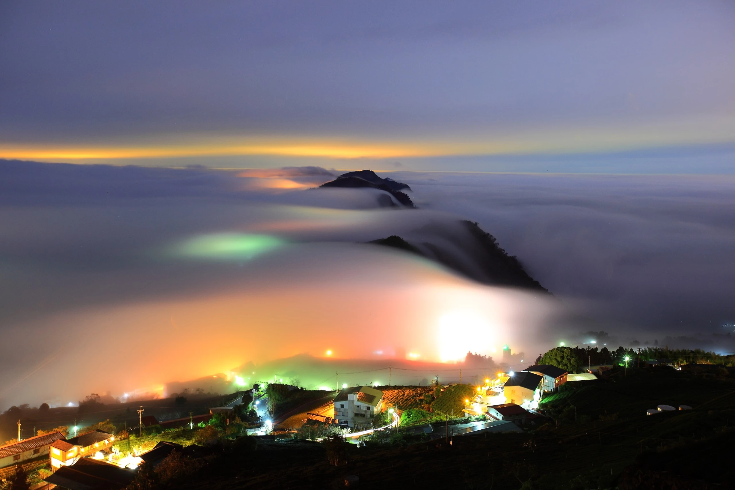 琉璃光簡單來說算是雲海的一種,不過特別指在夜景時分,就是在有雲霧裊繞的夜景城市燈光透過雲霧的折射後,就像琉璃器皿透光後,顯現七彩迷濛般的色澤,因為底下需要有萬家燈火點綴,所以拍攝點必須在城市、小鎮附近,雲層不能太高或太厚、遠離城市。 嘉義縣石棹地區,秋冬時節因地形及濕冷氣候影響,雲霧對流旺盛催生出如瀑布般壯觀雲海及七彩琉璃光等夢幻自然勝景,吸引眾多攝影愛好者來此等候夢幻美景。