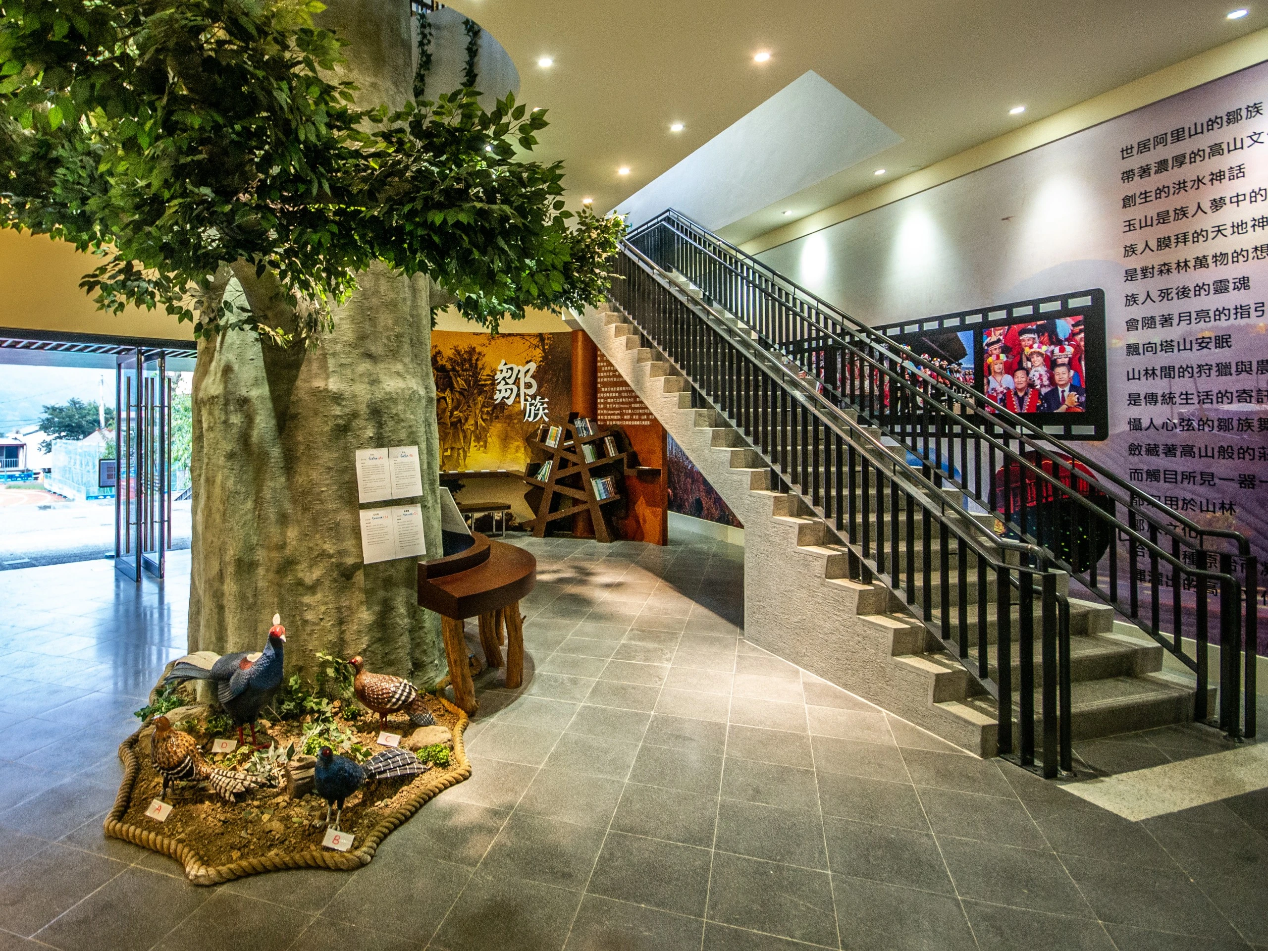 鄒族自然與文化中心位於阿里山達邦部落,主要以鄒族文化為核心,推展鄒族文化(物)典藏保存、開發多元課程教學運用進而吸引學術研究,提升個人知識、旅遊之水準,成為阿里山文化發展推廣、生態旅遊線中另一重要之主軸。 阿里山鄉文化館於建築方面融入kuba(男子聚會所) 建築特色意象,彰顯中心為鄒族族群明確性。入口廣場進入一樓諮詢服務站及常設展示區,參訪者亦可至視聽簡報室獲取鄒族相關資訊,館內設有遊戲化互動體驗、典藏室收集真實文物展示及部落風貌雕塑營造立體氣氛,帶給參訪者多元的導覽體驗。拾階而上可至二樓之特展空間,並於戶外留設觀景露台,可遙望阿里山公路及俯瞰達邦全景。 文化館亦提供旅遊諮詢、導覽解說、閱讀、休息充電服務。週邊也有豐富的文化與生態資源;生態步道、達邦社kuba(男子聚會所)、mo no peisiya(家族祭屋)、部落藝術家莊暉明所畫的鄒族傳說故事牆,集結部落文化資源,發展出鄒族獨有特色。