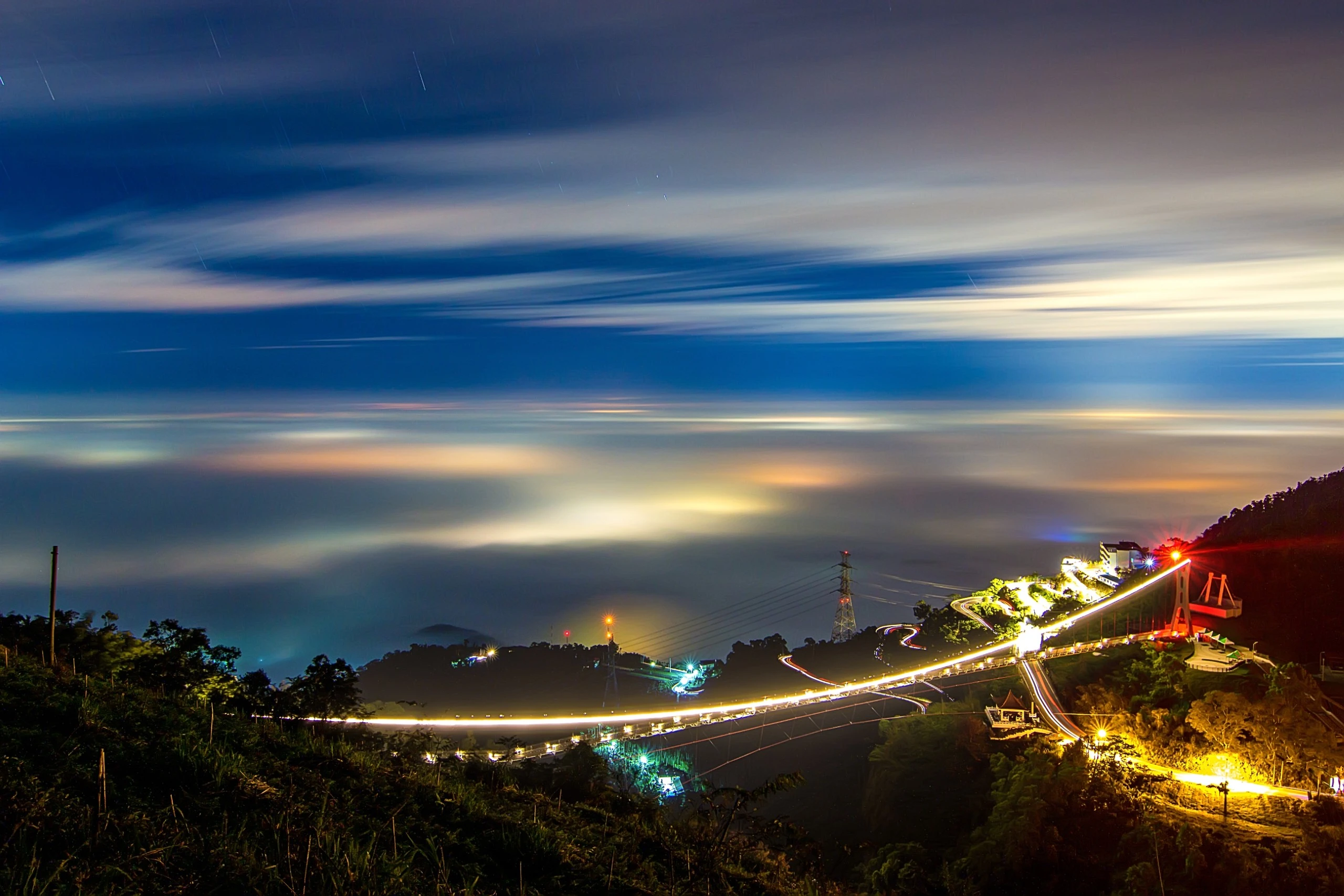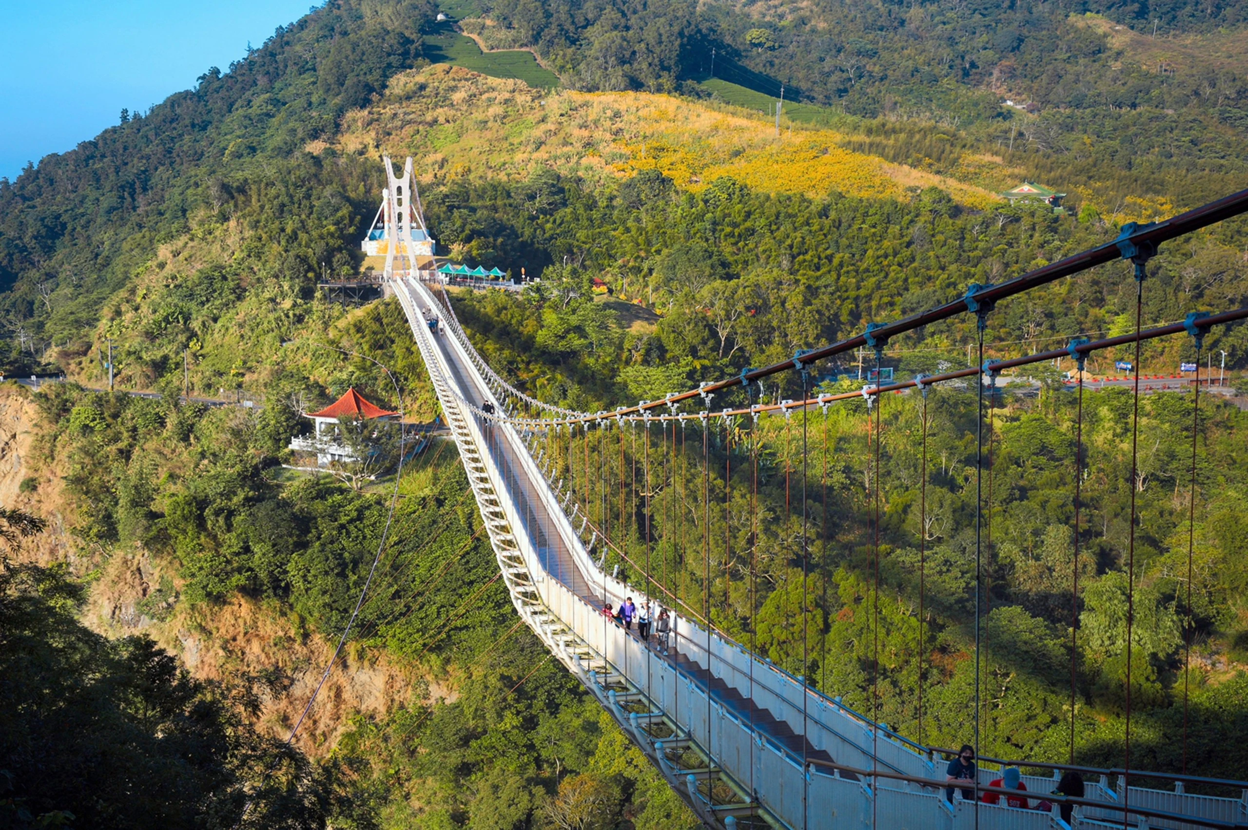 景點投票太平雲梯 梅山鄉| 山林風光 分享嘉義縣梅山鄉太平村下坑仔5號05-2571215特色太平雲梯海拔約1000公尺,長281公尺,橫跨三原彩虹瀑布,俯瞰雲海與壯闊嘉南平原2124 票詳細介紹太平雲梯長度281公尺、海拔約1000公尺海拔最高之景觀吊橋,從梅山太平村望風台橫跨三原彩虹瀑布通往龜山,讓旅客能俯瞰嘉義風光還能欣賞雲海風景,可將知名的梅山36彎美景盡收眼底,甚至能遠眺嘉南平原。