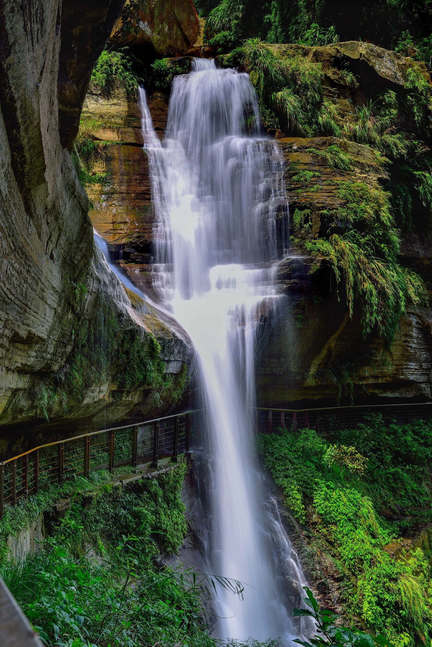 步道自清代起,即為住民挑木炭下山變賣而行走的古道,全長約2.5公里,走在步道中可以欣賞多款不同的美麗風景,斷層沉積岩山脈的壯麗、垂直落下山谷中的大小瀑布、原始林相清新芬多精、時而雲霧飄忽的迷人奇境,且步道落差不大適合大眾輕鬆健行,解放平時忙碌疲累的身心靈。這裡有全台負離子最多前十名中的『龍宮瀑布』與『雷音瀑布』,龍宮瀑布更被美國史密斯國家歷史博物館出版的雜誌評為臺灣必去的七大瀑布之一。