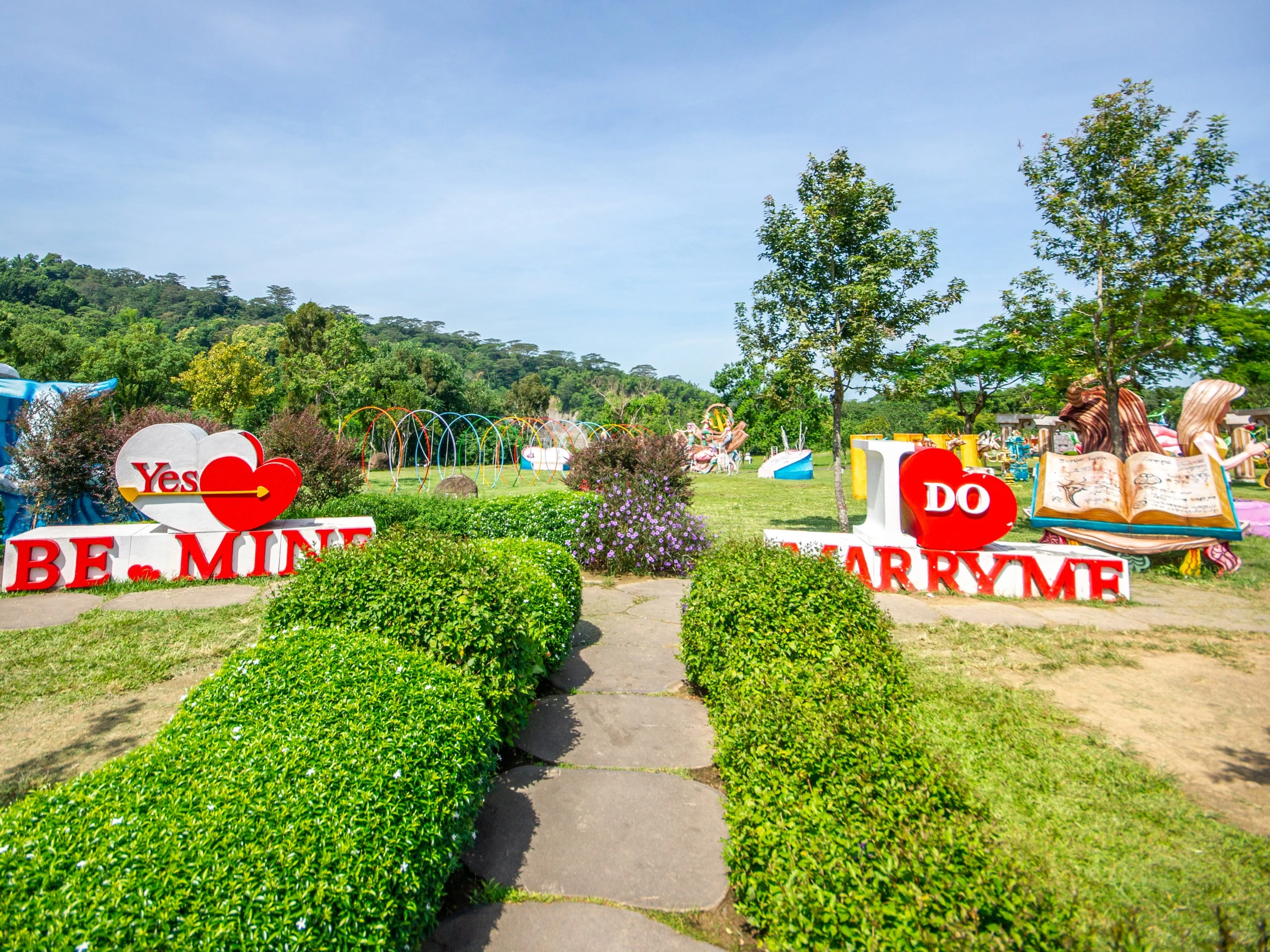 嘉義番路鄉的「牛埔仔愛情大草原」,又被稱為「愛情絲路」,是進入阿里山國家風景區前的一處重要休憩點。這座廣闊的綠地,以愛情與阿里山為主題,巧妙地設置了多座浪漫的裝置藝術,吸引著無數情侶、親子家庭前來打卡遊玩。 草原上的裝置藝術色彩繽紛,其中最吸睛的莫過於半層樓高的純白色大禮盒和一顆火紅的愛心,在翠綠的草地上顯得格外亮眼,為園區增添了甜蜜浪漫的氛圍。除了這些經典設施,園區的裝置藝術也會不定期更新,例如近年新增的「黑熊巡山員」,為遊客帶來新鮮感。 這裡幅員遼闊,不僅適合情侶們漫步拍照,也是家庭野餐、放鬆心情的好去處。小朋友們可以在草地上盡情奔跑、放電,享受大自然的懷抱。園區也設有完善的公共設施,如遊客中心、洗手間和停車場,方便遊客使用。 此外,園區內還有與在地店家合作的展售空間,販售鳳梨酥等阿里山相關伴手禮,讓遊客在欣賞美景之餘,也能品嚐當地特色美食。牛埔仔愛情大草原是一處集浪漫、休憩、娛樂於一身的複合式景點,為前往阿里山的路途增添了一份溫馨與驚喜。