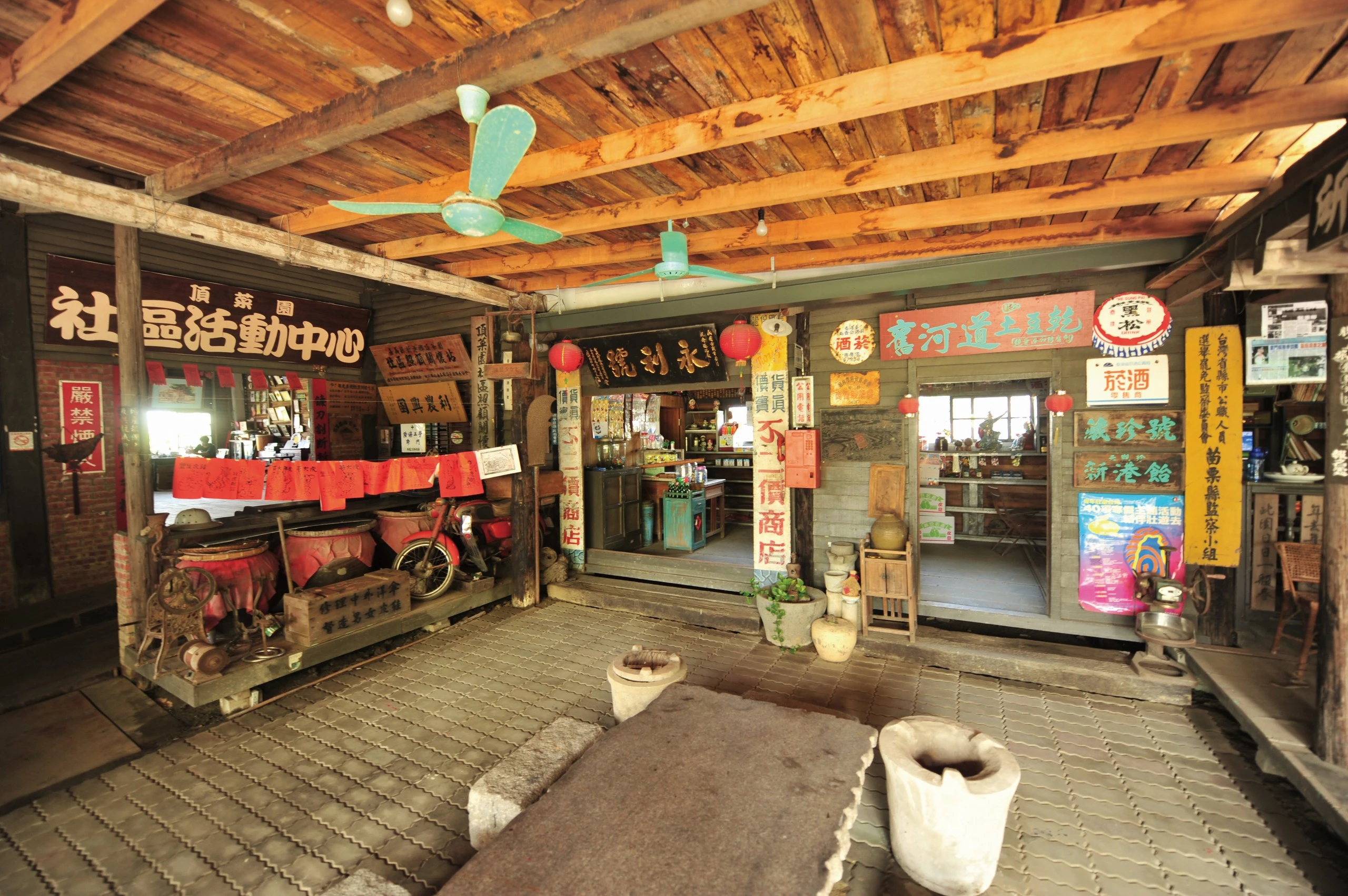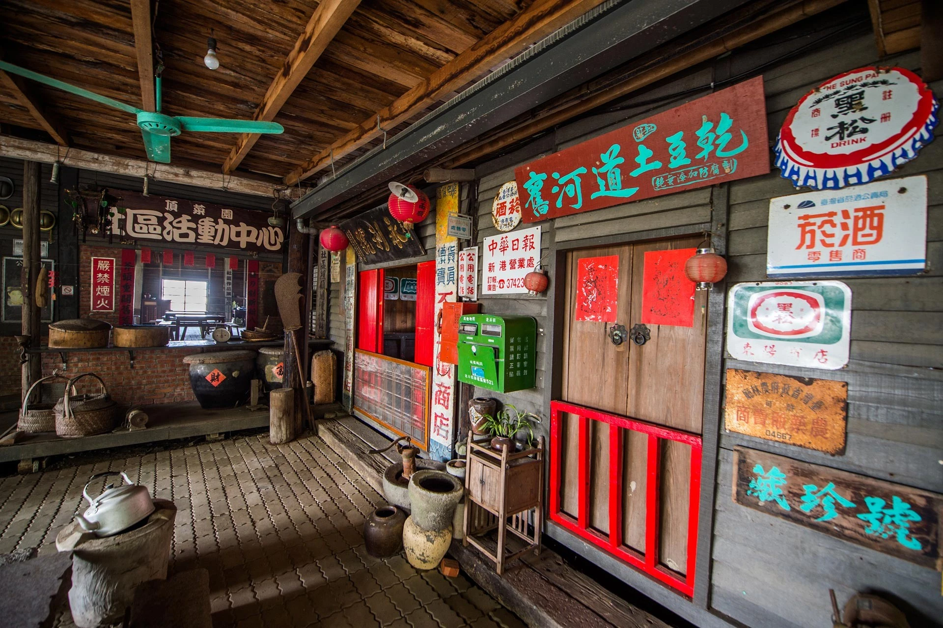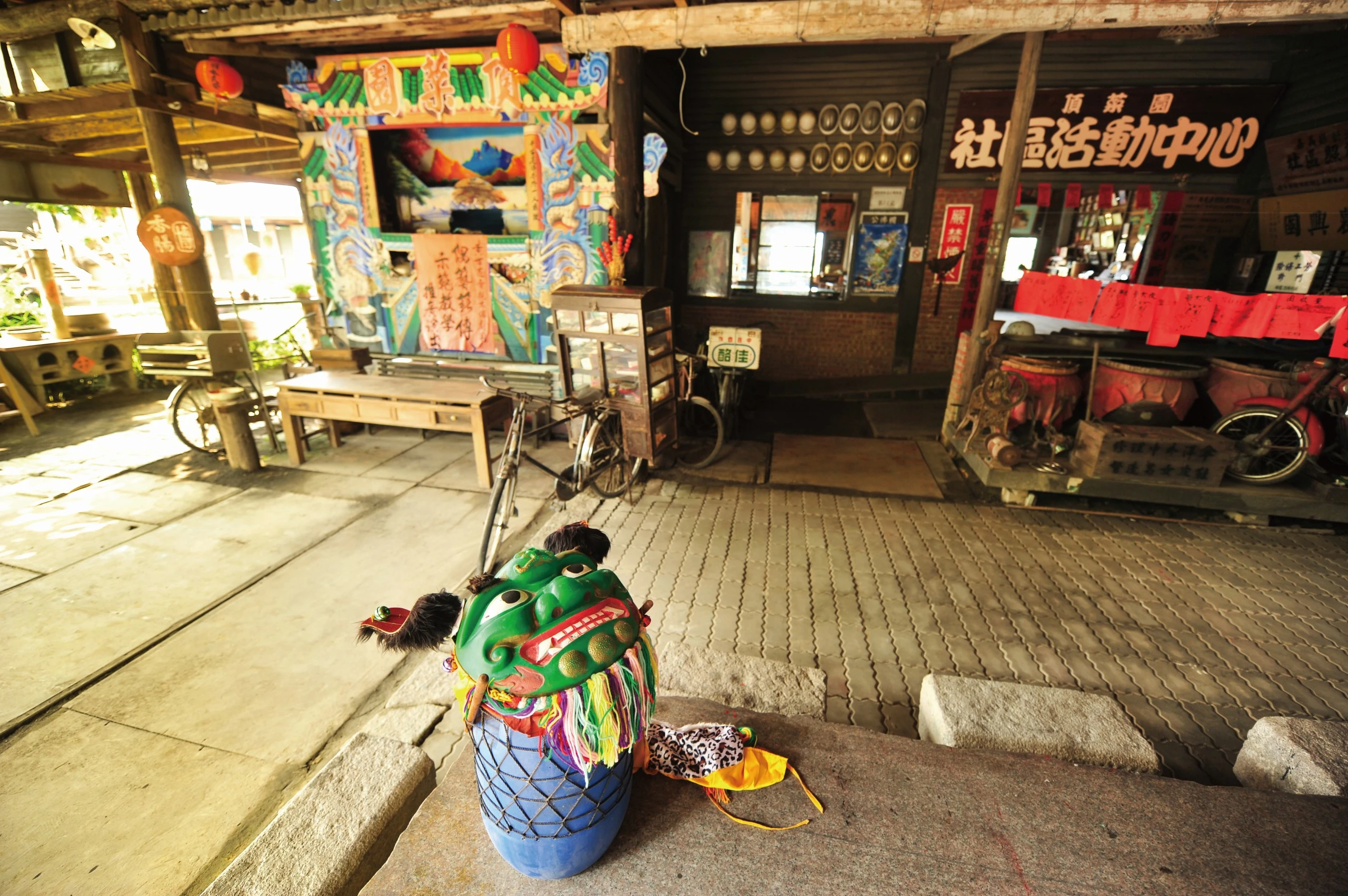 頂菜園鄉土館,由陳明惠先生一手打造。陳明惠是嘉義人,他為了不讓人忘記早期的鄉土生活,親手重現了台灣50年代的鄉土農村生活,透過創意的發想,在土生土長、一輩子未曾離開過的新港鄉頂菜園,一磚一瓦的塑造成一個世外桃源。園區內為了徹底呈現農業時代的景觀,甚至不建圍牆,且到處都可以看到廢物利用的巧思,極具鄉土原味。 園區內有很多台灣5、60年代的農作器具和家庭設備。像是八仙桌、石磨、石臼、簑衣、牛車、古甕、老式電話機、郵筒、紅眠床、長板凳,以及過去販賣家用品的雜什車…等等。甚至還有一個獨一無二的嘉義客運售票亭,在被淘汰之後被陳明惠保存下來,也是全嘉義最後一個早期客運的產物,可謂是「縣寶級」的珍品。而這所有的文物,全都放在一個用木製電線桿所做成的小木屋裡,別具風味。 園區內還有一個極具特色的「豬舍客棧」。早期台灣人養豬,帶著一種儲蓄的意義,吃不完的東西就給豬吃,等豬養肥了再拿去賣掉,換取金錢。陳明惠把過去台灣人用的豬舍改建成客棧,主要就是希望遊客看到之後會對豬產生好奇心,進而去了解豬在早期農業社會中所扮演的角色。 館內還囊括了交趾陶、製香、有機蔬果、新港飴、醬油、釀酒、火雞場…等多種早期的產業,並且特別規畫了各個產業的展售空間和體驗活動,遊客在這裡可以自由盡情的使用古文物,還能享受到烤肉、控窯、釣青蛙、捉泥鰍、網蜻蜓、挖蚯蚓、打陀螺、玩彈珠等兒時的樂趣,是一個可以非常值得一遊的休閒園區。