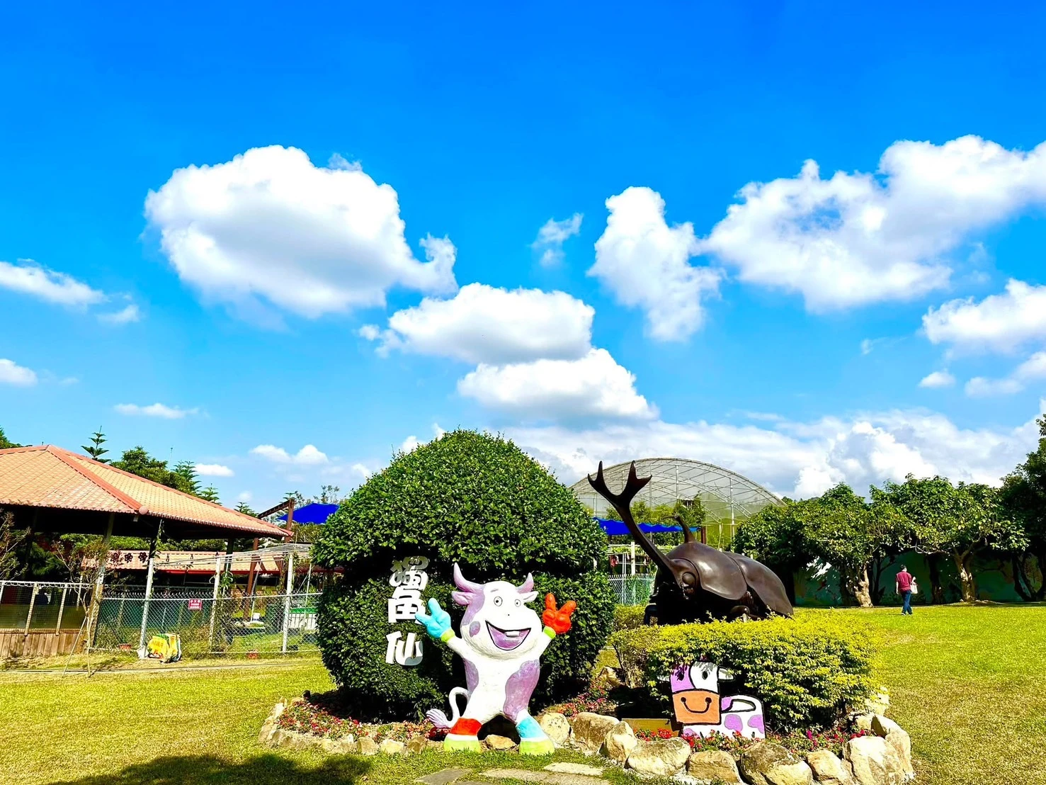 獨角仙休閒農場的牧場野趣有白鴿、駝鳥、山羊、小乳牛、迷你馬與你共譜鄉野戀曲。昆蟲館內的標本區收藏珍奇昆蟲標本,模擬野外生態環境的「獨角仙生態 區」是小朋友探索自然的天堂。 園區有座以原木搭建的休憩小站,一眼望去,驀然發現多重山脈層層巒巒,薄暮天際昏黃時刻,是賞落日的最佳地點。農場特別推出了多項教學項目,有甲蟲標本、檳榔葉扇、牛奶香皂、沐浴鹽、彩繪課程等等,歡迎大家來體驗。 牧場不僅是生產鮮乳的地方,更希望能將這份與土地、牛隻共生的體驗分享給更多人。結合自然生態、親子互動與酪農特色,打造出「獨角仙休閒農場」。在這裡,孩子能親近動物、體驗大自然寓教於樂;還能品嚐牧場直送的純淨鮮乳,共度美好時光。