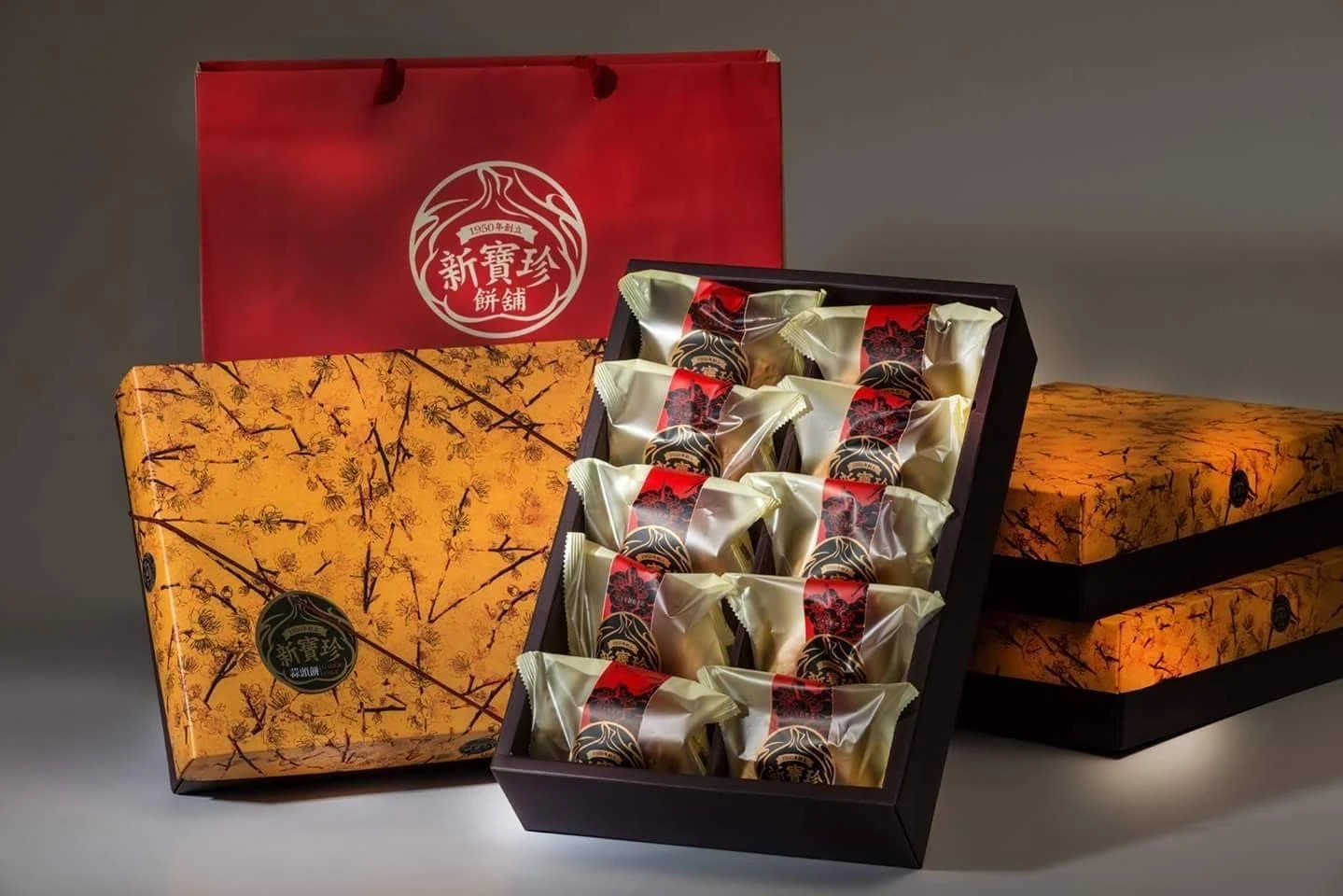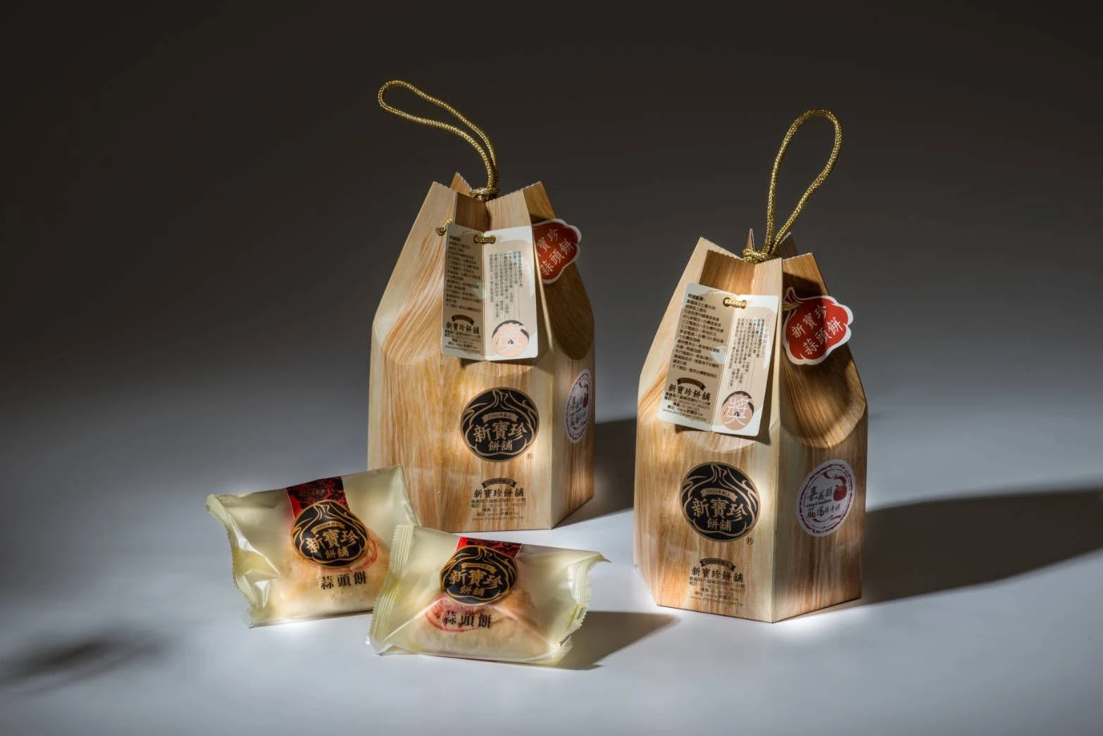 有一種味道,會在口中回香,在記憶裡回味。 愈是單純質樸的口感,愈是能感動我們的味蕾。 那不僅是口腹的滿足,更是對阿公時代老台灣的懷想。 「蒜頭餅」是早期蒜頭村農夫早出晚歸裹腹的點心, 以大蒜瓣為主要原料融入麥芽糖製成內餡, 口感酥酥脆脆,甘甜蒜味在口中回香, 就是這一股味道牽引著思鄉情懷,故以「回鄉餅」稱之。 時代愈進步,老滋味愈令人回味,新寶珍想要守住的就是這種傳統價值, 總使人想回頭尋找的樸實滋味。