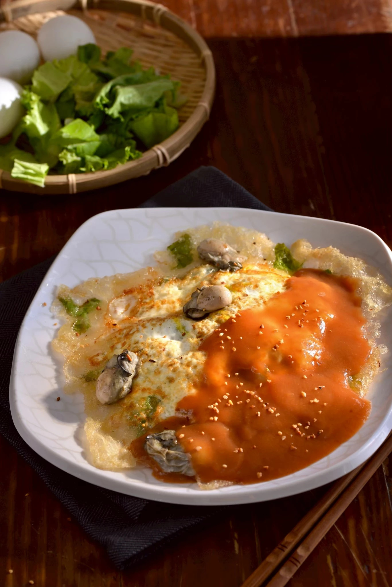 每一份蚵仔煎,都是一場味蕾的慶典。 鮮蚵飽滿、蛋香誘人、蔬菜爽脆,缺一不可。 淋上靈魂醬料,再灑上如金粉般的嘉義花生粉, 那一瞬間的香氣,完美詮釋「原味的美味」。