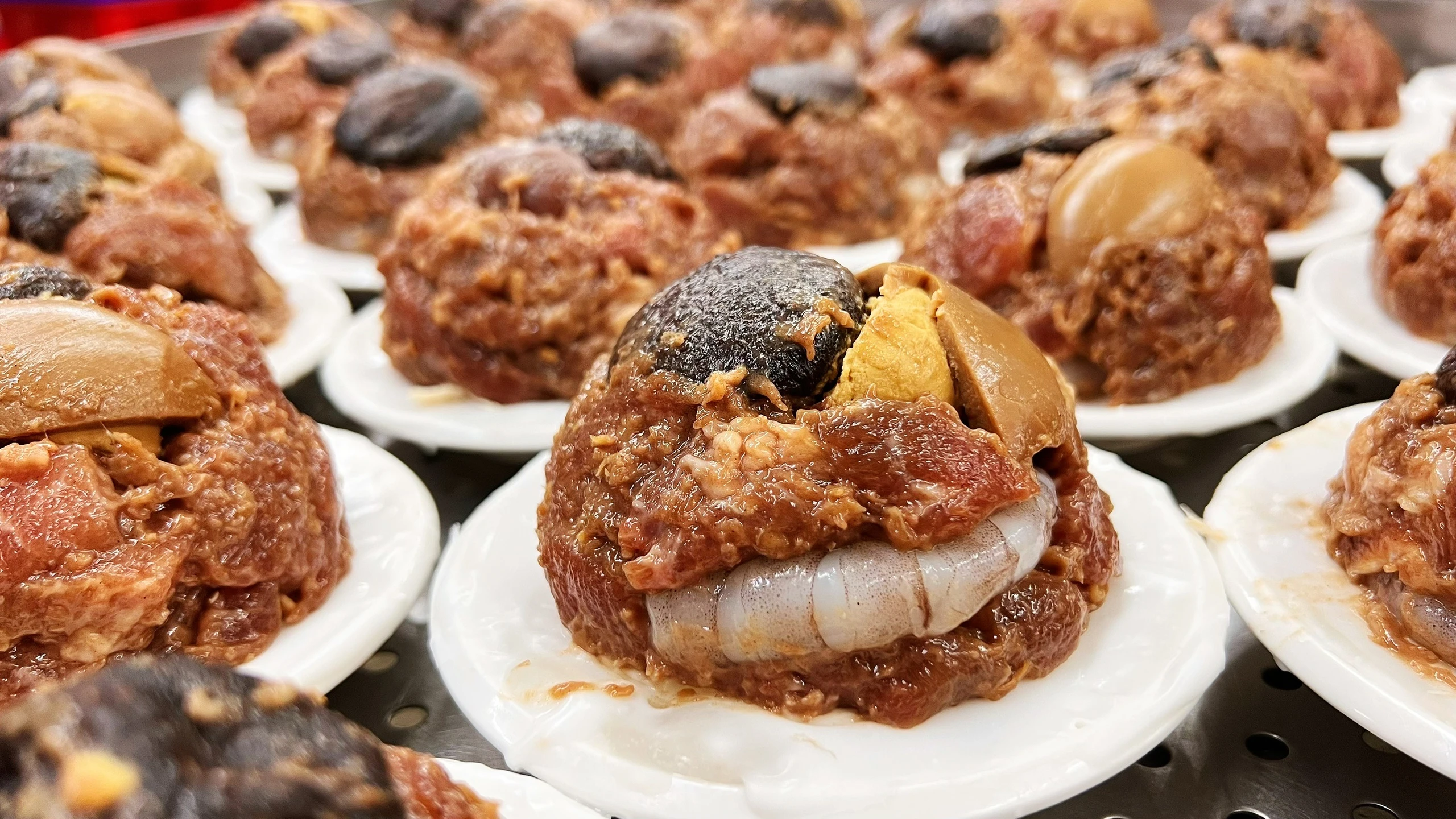 您準備好挑戰肉圓界的巔峰之作了嗎? 全台最重量級的 巨無霸海鮮肉圓,單顆足足超過 330克(9台兩以上), 以「份量震撼」與「口感細膩」征服饕客味蕾,成為布袋港必嚐名物! 嚴選七大黃金食材 每一顆巨無霸肉圓,都蘊含了七種頂級餡料,鮮美而奢華: 北海道干貝:鮮甜飽滿,帶來海洋精華。 布袋蝦仁:在地鮮捕,Q彈爽口。 大甲檳榔心芋頭:鬆軟香綿,融合甘甜。 嘉義雞肉絲:細緻纖嫩,增添層次。 特製香魯蛋:滷香入味,圓滿風味。 溫體現宰豬肉:鮮嫩多汁,肉香十足。 埔里花菇:濃郁菇香,提升整體鮮味。 搭配特製外皮:以特級地瓜粉、在來米粉與台梗9號米粉 精準調和,經過「先蒸後炸」的工藝,成就 外酥內軟、層次豐富 的經典口感。